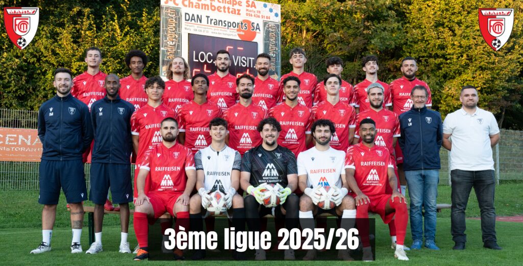 La première équipe du FC Marly, engagée en 3ème ligue fribourgeoise, reflète l’identité du club : combative, soudée et ancrée dans la formation locale. Elle vise à progresser chaque saison tout en représentant fièrement les couleurs de Marly sur les terrains régionaux.